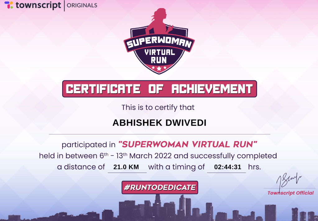 I also dedicated a virtual half marathon to the cause and completed it on Sunday gone by ! I dedicated this to my sister in US for the tough person she has been living through this changing world and dynamics !!