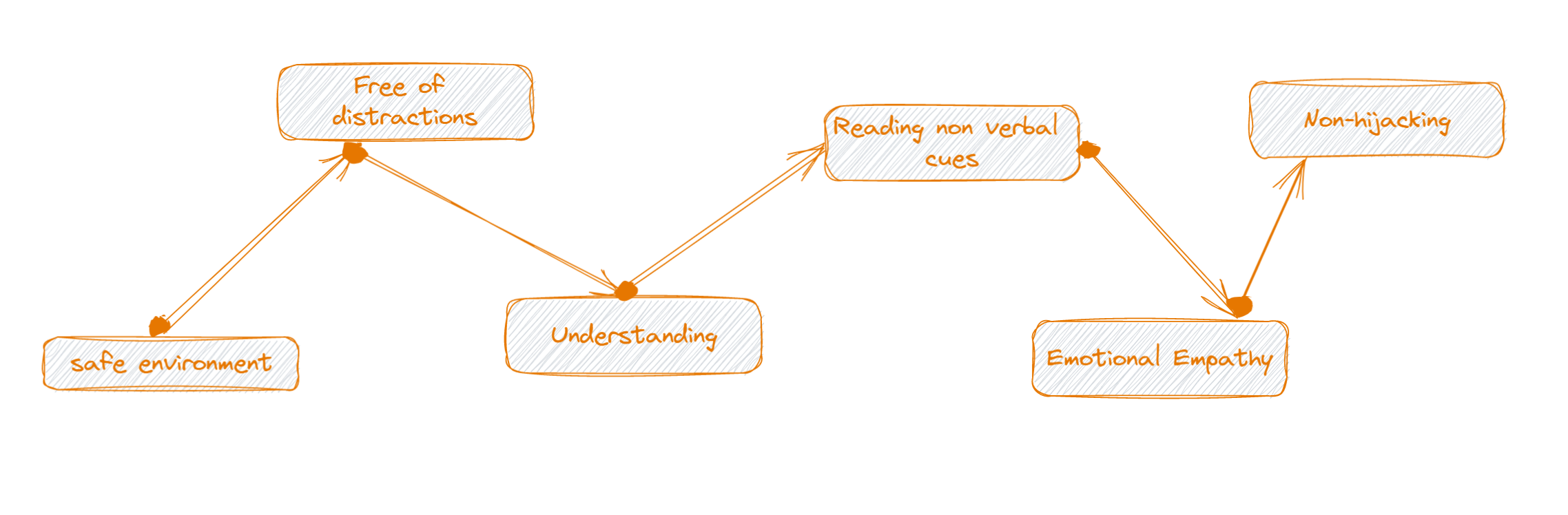 The approach compromises listening intently and focussing on follow-up questions on points that really matter. The direction of travel is to convey a probing, clarifying, and shaping of thoughts.