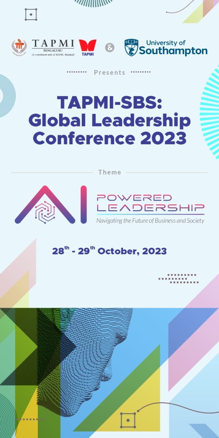 T A Pai Management Institute in collaboration with Southampton Business School, UK hosted a Global Leadership Conference 2023 on October 28th and 29th at Manipal Academy of Higher Education, Bangalore campus. The conference theme was centered around the theme “AI Powered Leadership: Navigating the Future of Business and Society”.