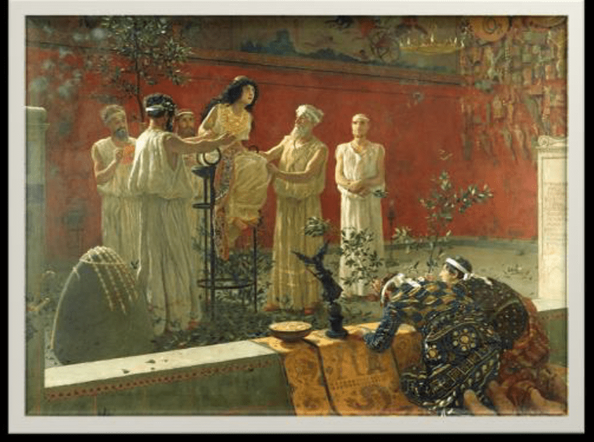But How is God’s will and guidance shared with the people? An oracle known as the Pythia communicates Apollo’s will. Reserved only for women, it was one of the most important jobs. People from as far as Afghanistan and Egypt came to seek to advise. No important event happened without consulting the oracle.