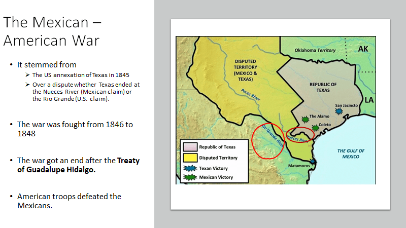 The Mexican–American War, also known in the United States as the Mexican War and in Mexico as the Intervención estadounidense en México, was an armed conflict between the United States and Mexico from 1846 to 1848