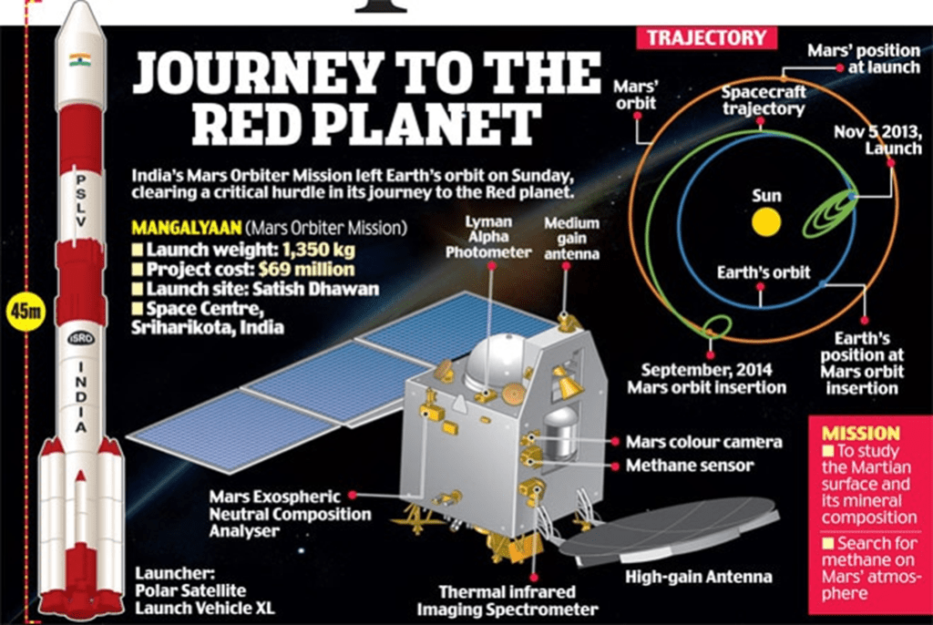 Mangalyaan, India’s first interplanetary mission was launched, making ISRO the fourth space agency to reach Mars. It is India’s first interplanetary venture and is studying Mars’ surface features, mineralogy and atmosphere. Mangalyaan gained worldwide repute as being the least expensive Mars mission till date.