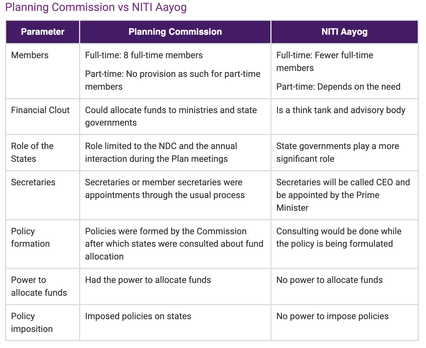 In 2014, it was replaced by NITI Aayog, a more robust organisation. It is more like a think-tank that works with stakeholders for developing the country.