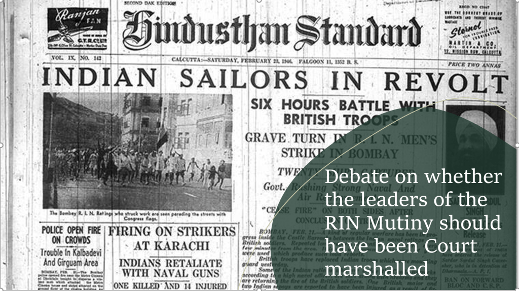 The Royal Indian Navy Mutiny (RIN) or also called as Royal Indian Navy Revolt began at Bombay harbor on 18 February 1946 by Ratings (non-commissioned officers and sailors) against the British. RIN soon spread to other parts of British India. Between 10000 – 20000 sailors came to be involved in the mutiny which was suppressed by the British using force.