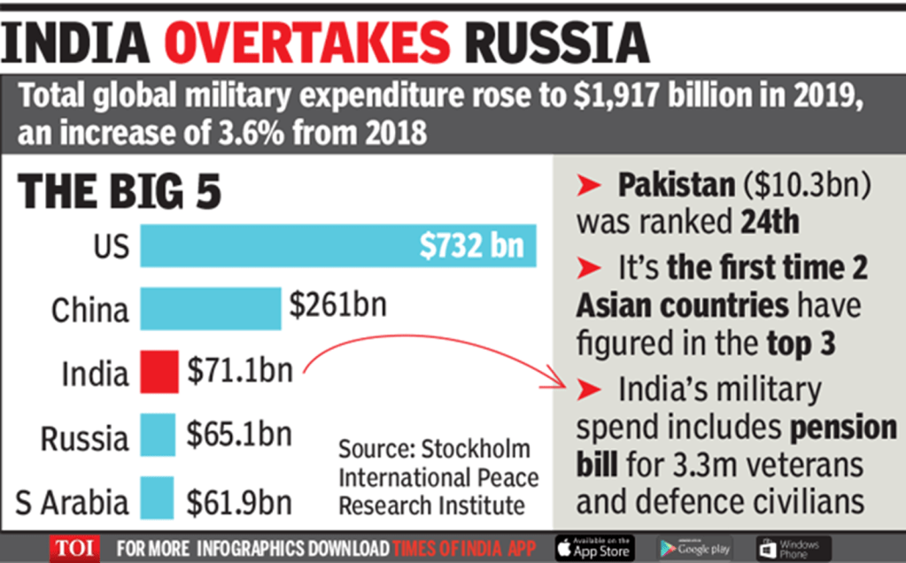 - Whereas countries like NORWAY, DENMARK, SWEDEN, they spend least on their defense, many of those countries don’t have any army, navy and air force of theirs as they are members of NATO so they rely on that, also they don’t have any strong enemy hence they can focus on development totally.
