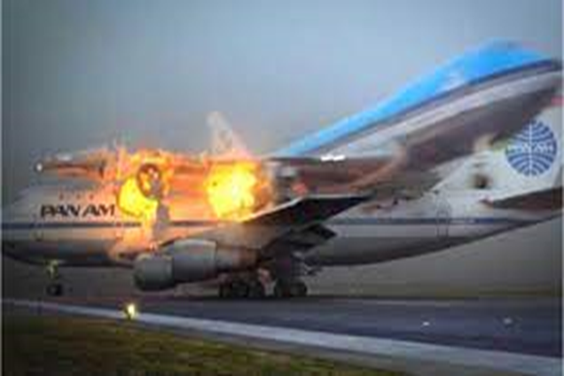 The Pan American crew sees the lights of the KLM 747 emerge from the fog 2,000 feet away and closing in fast. On seeing the approaching plane, Grubbs shoves the thrust levers to full power and tries to take the plane off of the runway and onto some grass that runs alongside it. The pilots on PAN – American 747 before him, but he can do nothing other than try and get the plane airborne by pulling back on the elevators. As the KLM 747 starts to gain height, its undercarriage slams into the Pan Am plane’s midsection setting off a series of explosions.