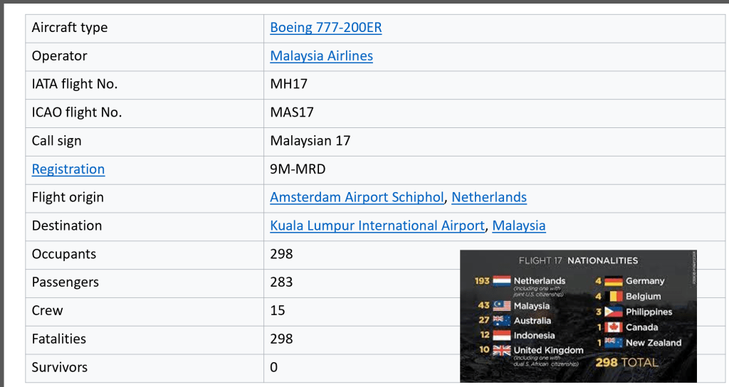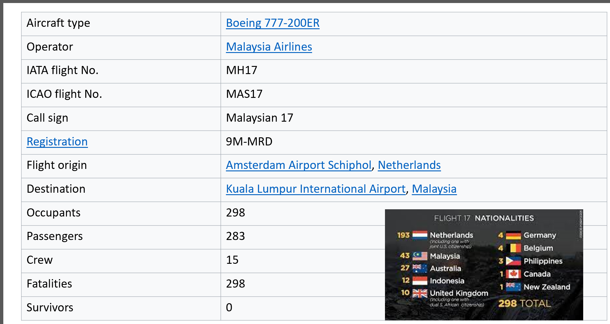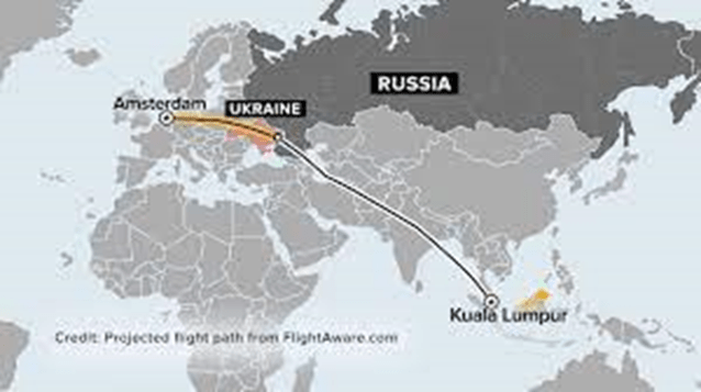 After Cold War Ukraine got separated from USSR. Ukrainians want to be part of Europe, but Russia wants Ukraine to be align with them. Russians attacked Eastern-Ukraine and captured Crimea. There was a war zone in the Eastern-Ukraine. Flights were not allowed to fly over the war zone.
